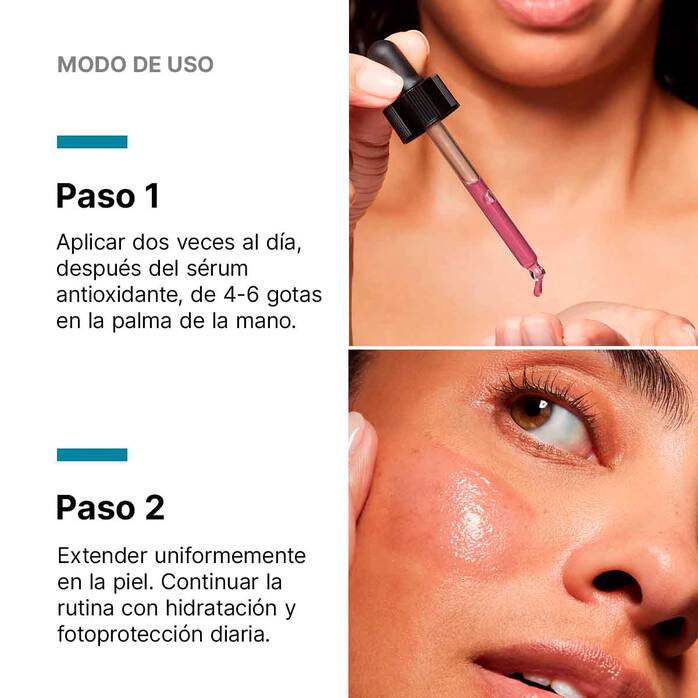 Extender el sérum de ácido hialurónico sobre la piel. Si lo utiliza por la mañana, aplíquelo después de su sérum antioxidante de vitamina C de SkinCeuticals y antes de su protector solar de SkinCeuticals.